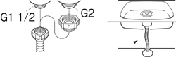 ●流し排水栓のネジ部(呼び40)とアダプター使用でBL仕様流し台の排水栓ネジ部(呼び50)に適合。