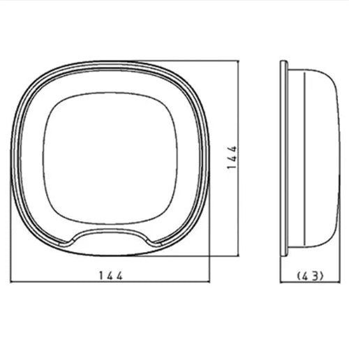 ●奥行き144mm、幅144mm、深さ43mm