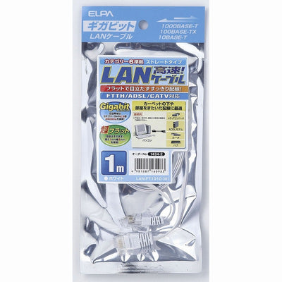 【在庫処分】【メール便対応】朝日電器(ELPA) フラットLANケーブル 1m ホワイト 【品番:LAN-FT1010(W)】
