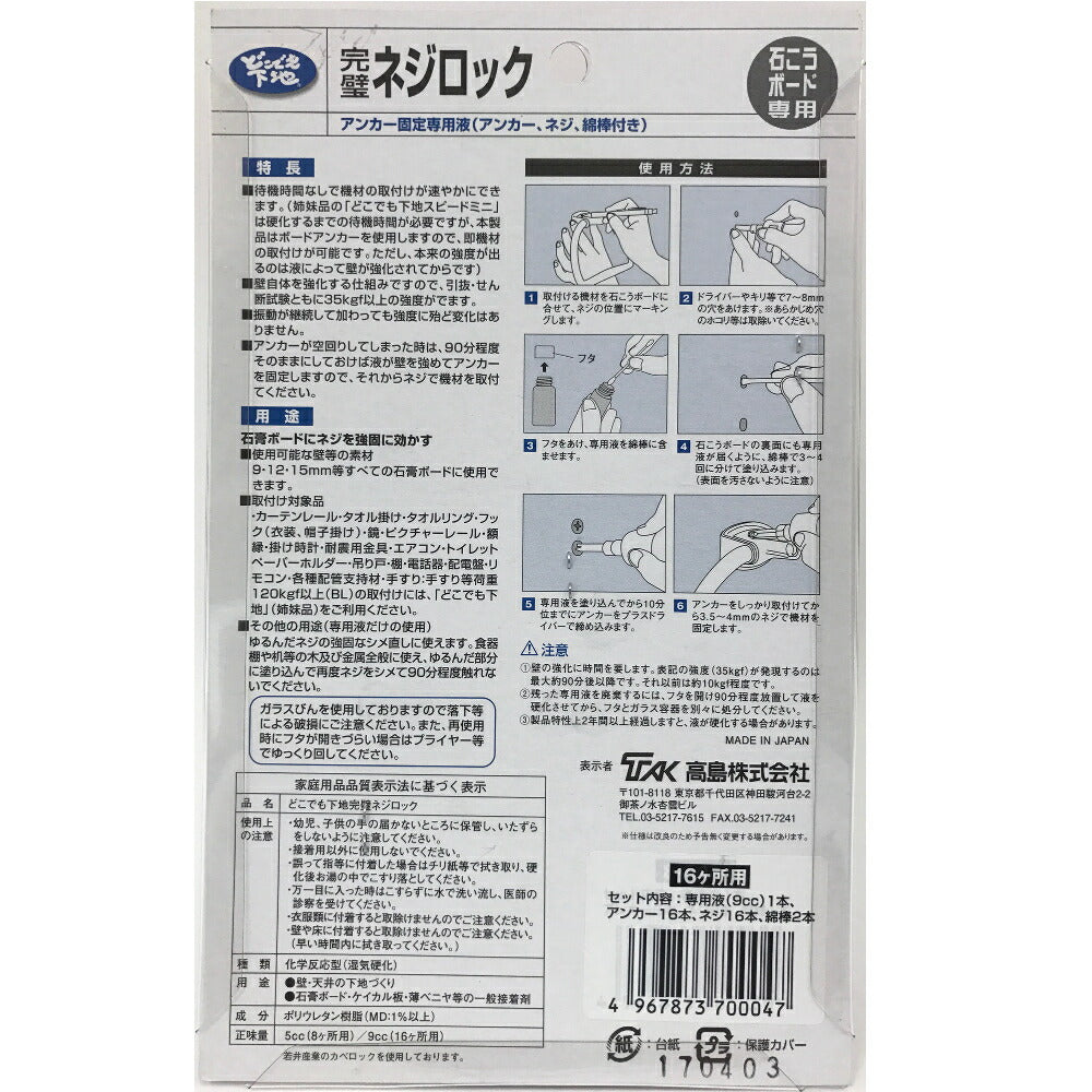 ●セット内容: 専用液(9cc)1本、アンカー16本、ネジ16本、綿棒2本。