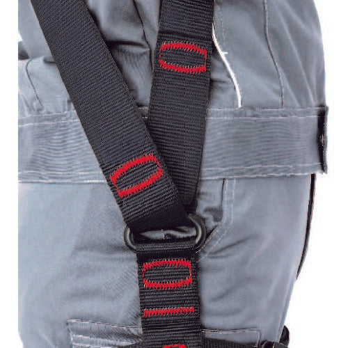●サイドループにより、上下のベルトが独立しており、腿部の大きな動きに対しても自由度の高い構造のため、足場作業、建設作業、メンテナンス等の頻繁に動く方におすすめです。