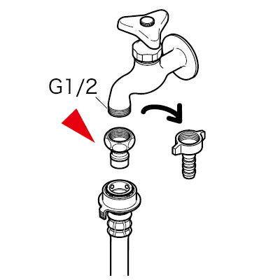 ●13(1/2)用カップリング付横水栓に自動洗たく機用ホースが接続できます。