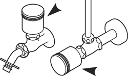 ●止水栓や洗濯機水栓などの給水栓上部と交換し、水撃を軽減します。