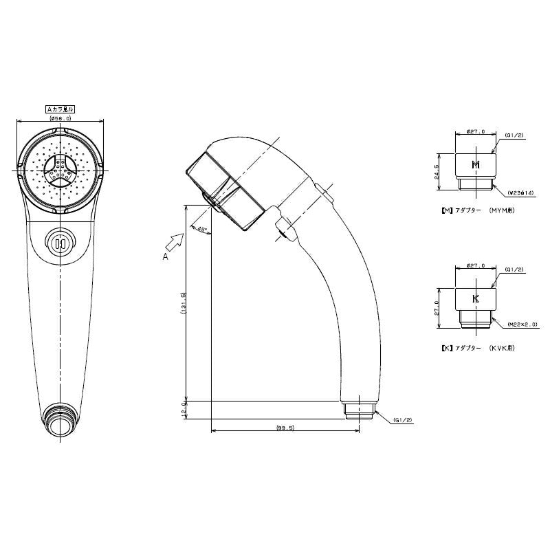 ●低水圧(低流量)対応用シャワーヘッド。動水圧0.05MPa、流量5L/分の条件で使用できます。