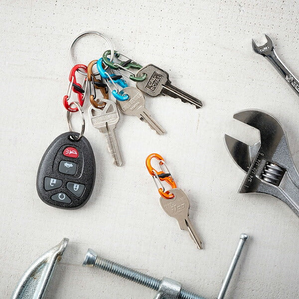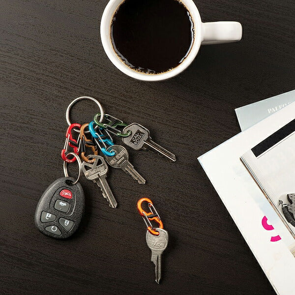 ●カラフルなアルミニウムエスビナーを組み合わせた、セキュリティ万全のキーリング。