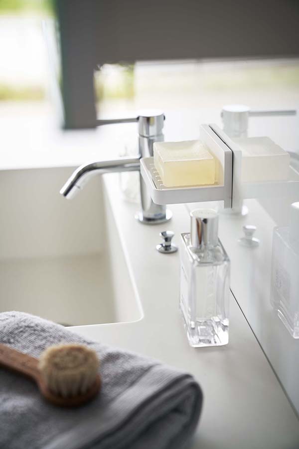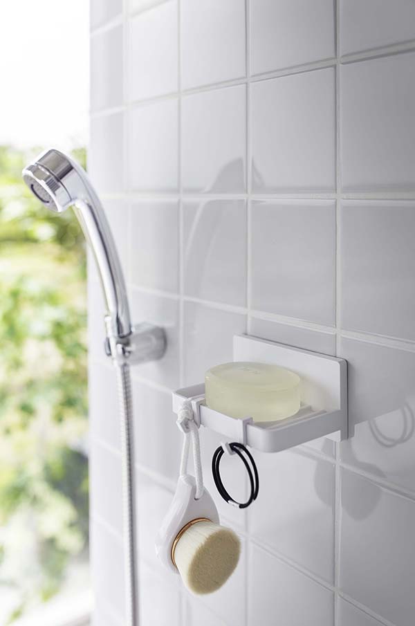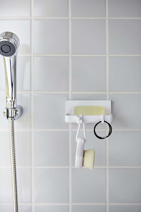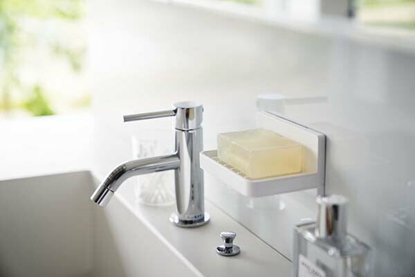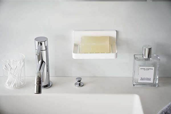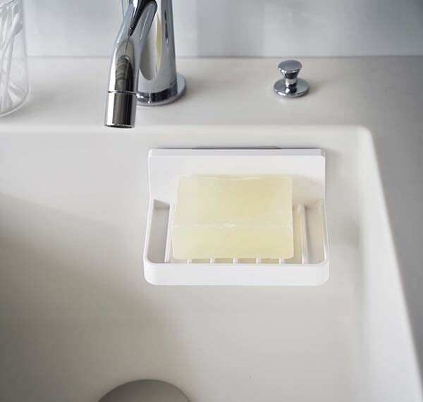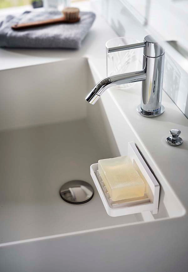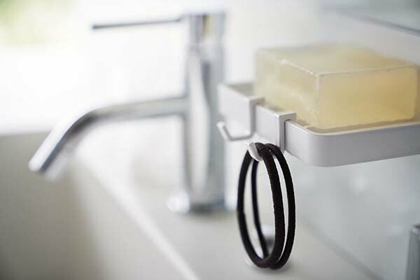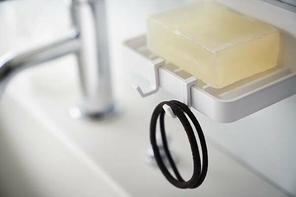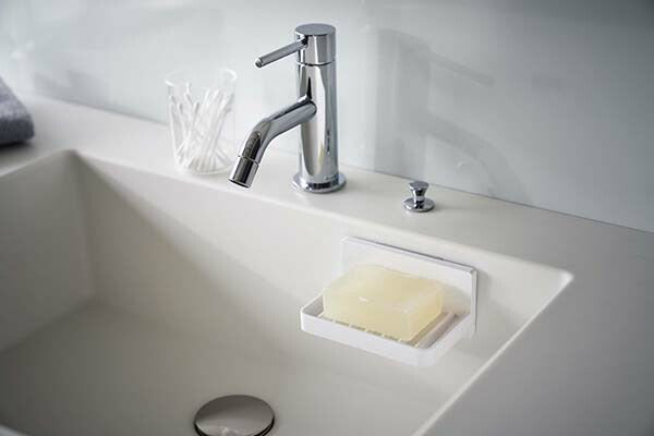 ●フィルムフックで好きな位置に簡単取り付けできる水が流れるソープトレー。