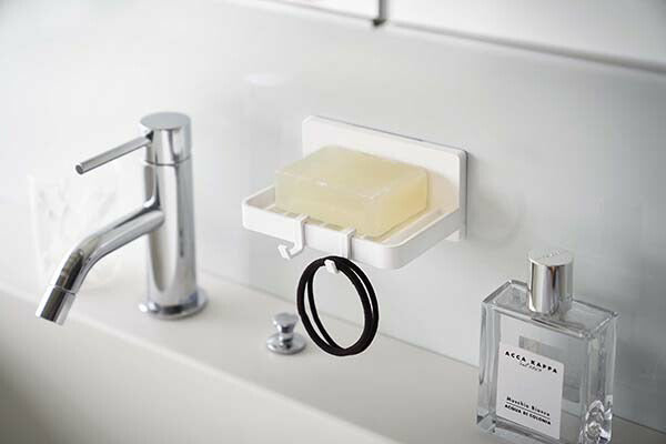 山崎実業 フィルムフック 水が流れるソープトレー ミスト ホワイト 【品番:05958】