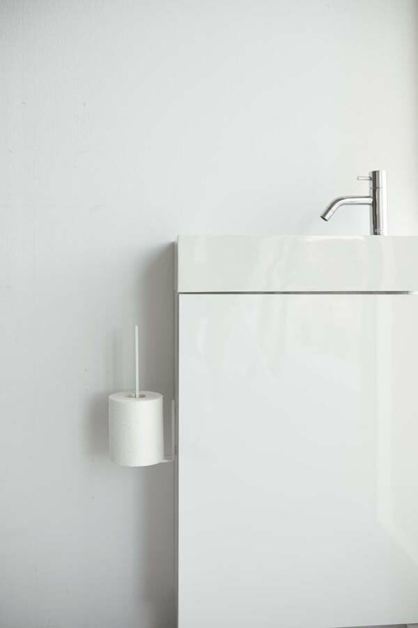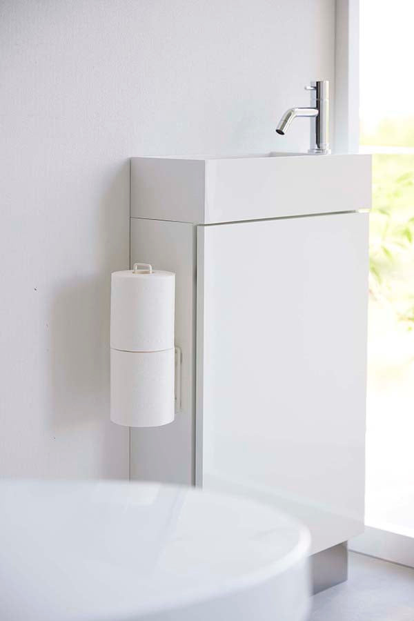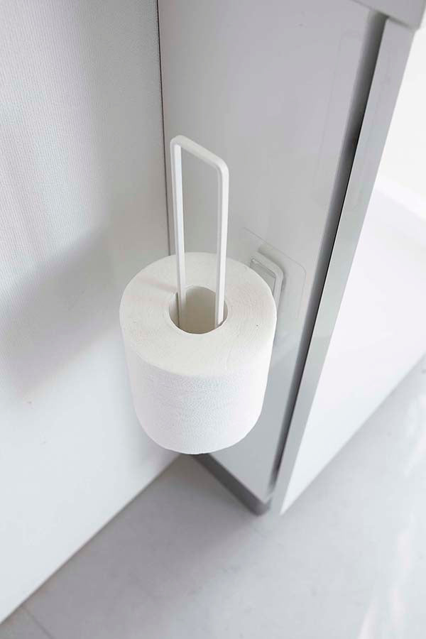 ●フィルムフックでトイレタンクやタイルに、浮かせて設置できるトイレットペーパーホルダー。