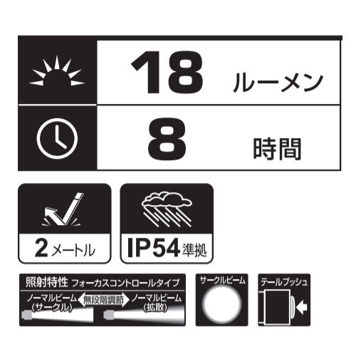 ●スライドフォーカスシステム: ヘッド部分を前後させることで、片手で簡単に照射角調整をする事ができる。