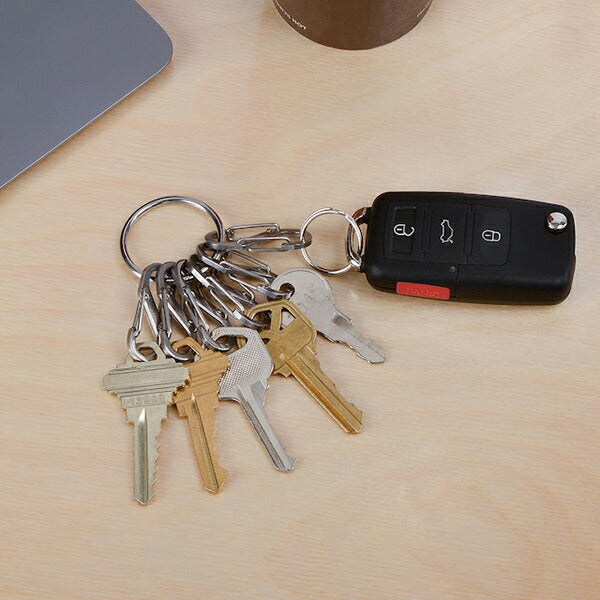 ●ステンレススチールのリングに6個のエスビナーチップが付いた、シンプルなキーアクセサリー