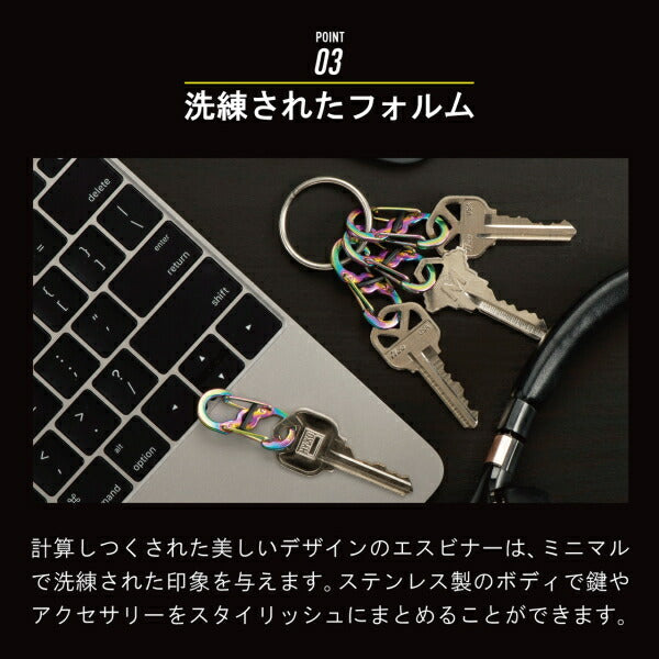 ●ナイトアイズを象徴するデュアルゲートのS型カラビナー「エスビナー」は、2008年米国を代表するアウトドア雑誌『BACKPACKER MAGAZINE』誌のEditor’s Choice賞を受賞しています。