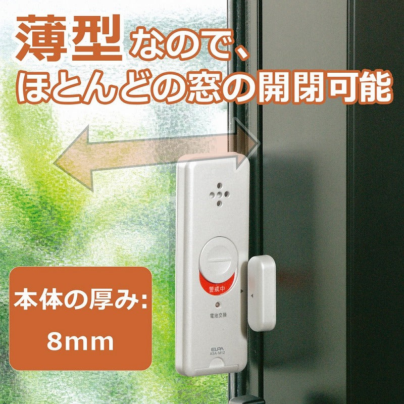 ●窓・ドアの開放検知方式アラームの2個入り商品。コイン形リチウム電池CR2032X2個付属。