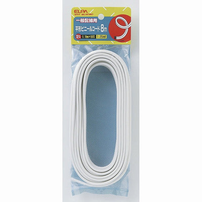 【メール便対応】朝日電器(ELPA) 平形ビニールコード 8m ホワイト 【品番:VFF-8LH(W)】