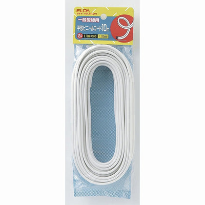 【メール便対応】朝日電器(ELPA) 平形ビニールコード 10m ホワイト 【品番:VFF-10LH(W)】