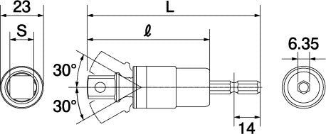●ソケットレンチ用ソケットを安全に接続するボール付です。