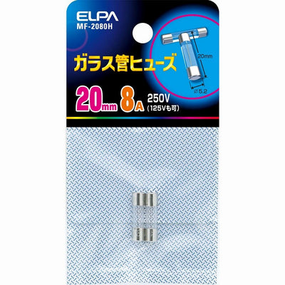 朝日電器(ELPA) ガラス管ヒューズ 20mm 250V 8A 【品番:MF-2080H】