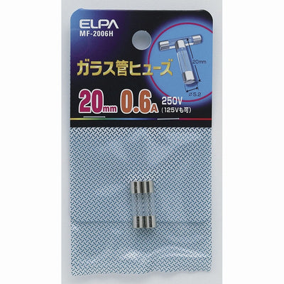 朝日電器(ELPA) ガラス管ヒューズ 20mm 250V 0.6A 【品番:MF-2006H】