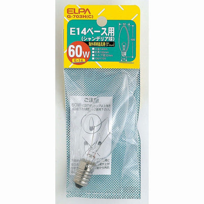 朝日電器(ELPA) シャンデリア球 60W E14 クリア 【品番:G-703H(C)】