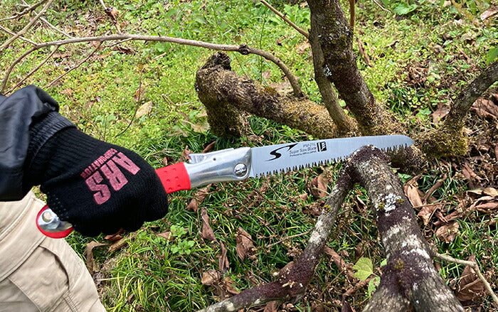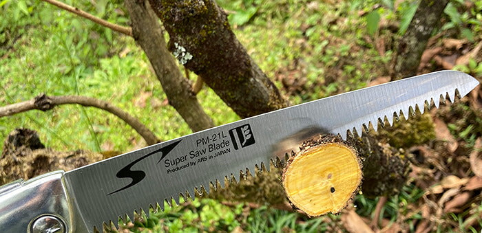 ●プロの現場に貢献する鋸の追求・開発により、軽く、さびに強い、耐久性抜群のメタルボディを実現しました。 生木もザクザクカットする、剪定作業に最適な荒目タイプ。作業領域がより広がります。