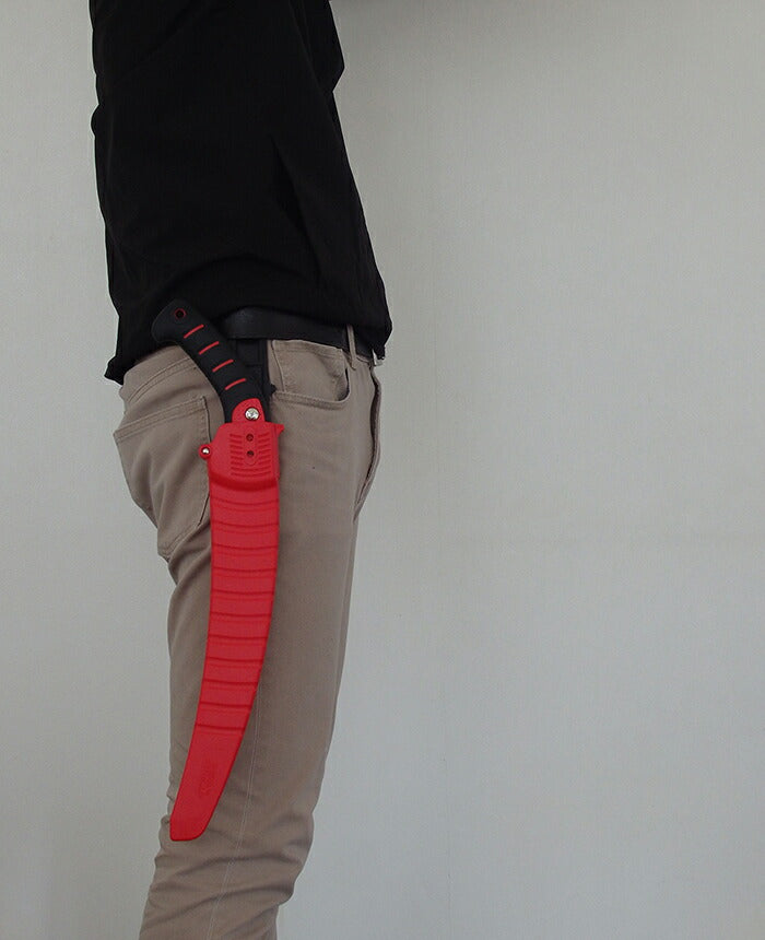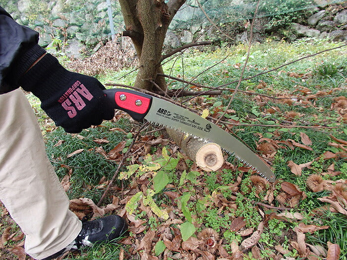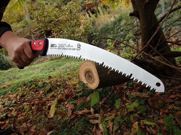 ●刃がカーブしているため、手前に挽く力だけで刃が枝にくい込みやすく、ダイレクトに力を伝達。 挽くことで切る方向に自然と力が働きます。特に、腰より高い位置での剪定作業に威力を発揮します。