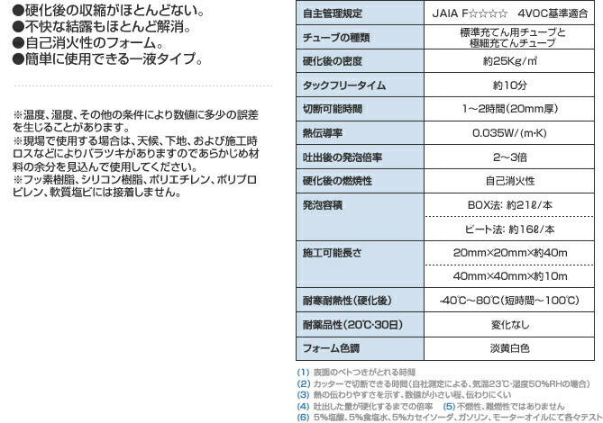 ●発砲容積: BOX法:約21L/本、ビート法:約16L/本