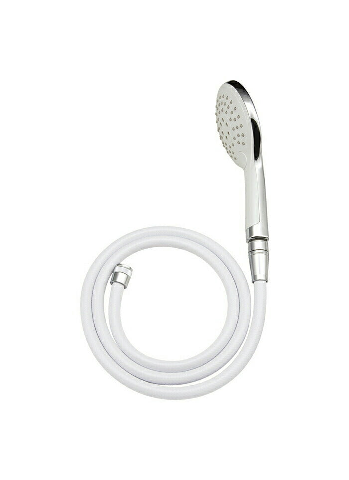 ●白とメッキのバイカラー色を取り入れた、デザイン性のあるボタン式の切替シャワーヘッドです。
