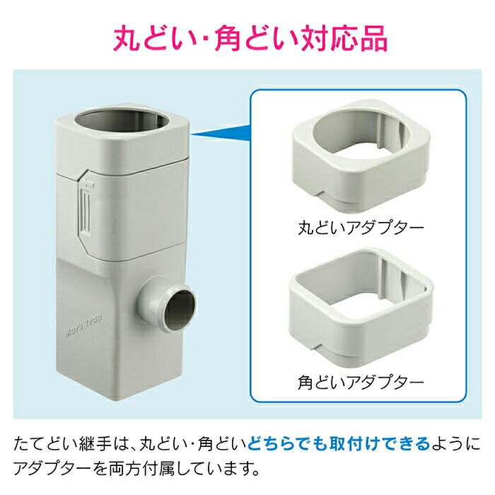●たてどい継手はアダプターも付属しておりますので、丸どい・角どい、どちらにも取付が可能です。