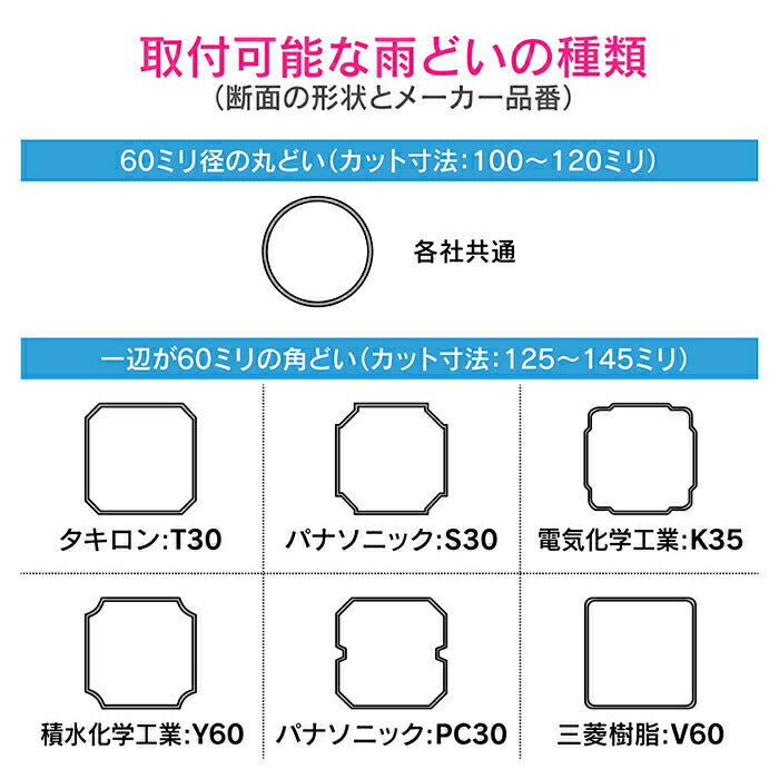 ●付属品: たてどい継手、たてどいアダプター(丸どい用・角どい用各1個)、ホース(2m)、バンド(3本)、ホースキャップ