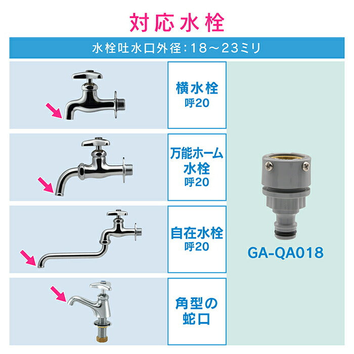 ●ビス止め式で、外径18~23ミリの吐水口や角型の吐水口に取付できます。