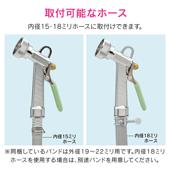 ●レバー固定金具が付いているので、連続散水が簡単です。