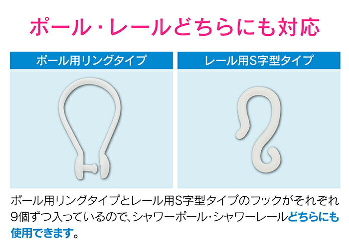 ●フックが2種類ついているので、カーテンポール・カーテンレールのどちらにも使用できます。