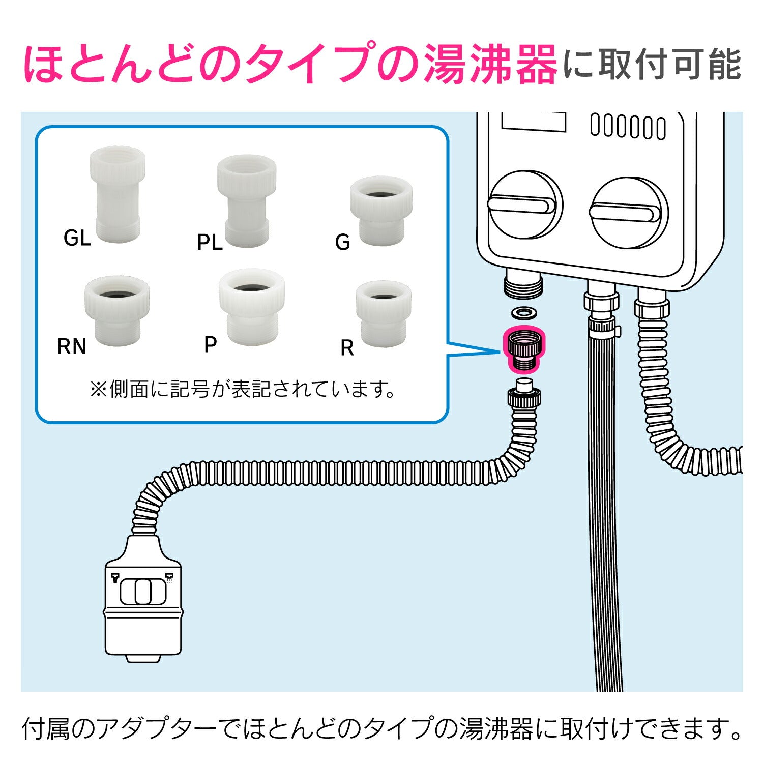 ●アダプター付きなのでほとんどの湯沸器に取付けできます。