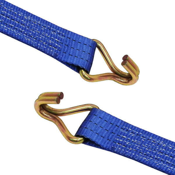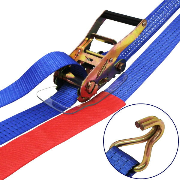 ●ラチェットバックル式カギフックのラッシングベルト、握り易いバックルと柔軟強度な繊維ベルトで荷に優しく簡単安全に荷締め作業ができます。