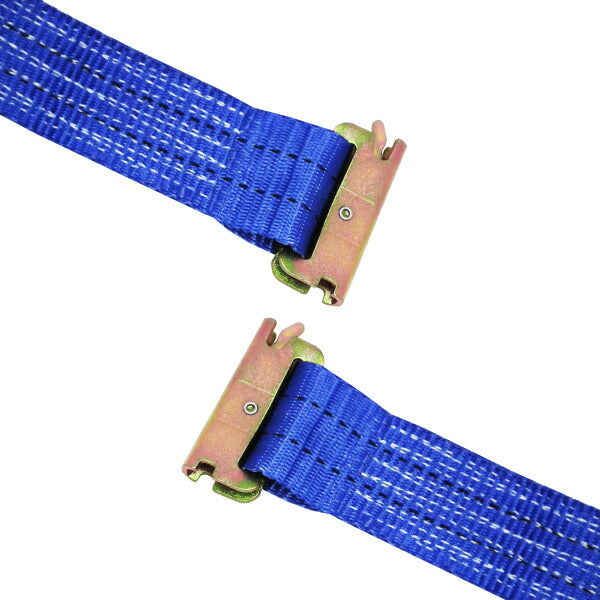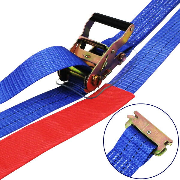 ●ラチェットバックル式ワンピースのラッシングベルト、握り易いバックルと柔軟強度な繊維ベルトで荷に優しく簡単安全に荷締め作業ができます。