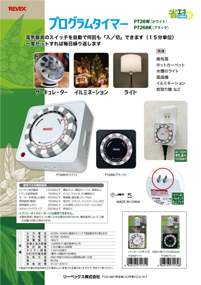 ●タイマー誤差:±5分/15分間でON/OFF