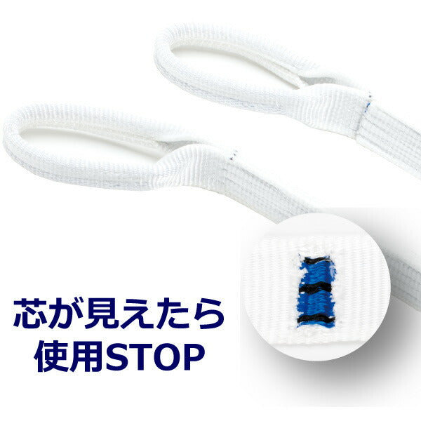 横すべりに対して非常に弱いので、角張った鋼材などの吊り上げには、必ず「当てもの」をしてお使いください。