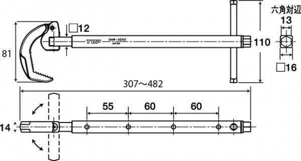 トップ工業 シンクレンチ(ワイド洗面レンチ) 【品番:SMW-3050】