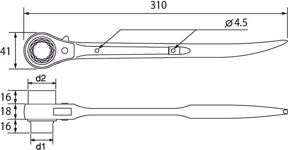 ●頭部は加工の際の穴埋めを施してあり、円滑なラチェット駆動を維持します。