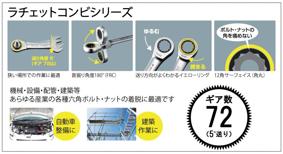 ●ボルト・ナットを傷めない12角サーフェースタイプ。
