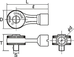 ●駆動方向の切替えが出来ますので、プリセット形トルクハンドルへの差込方向を考える事で左ねじの締付にも使用できます。