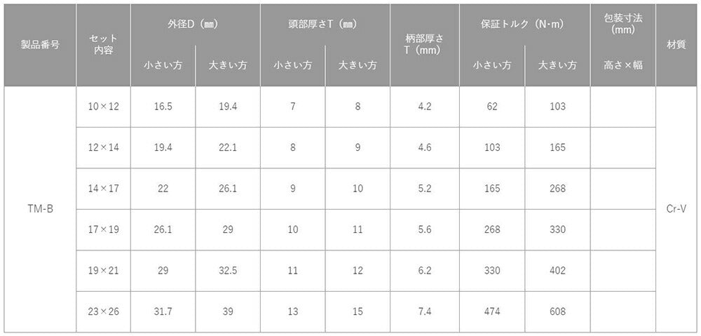 ※ボルト・ナット等の二面幅に合わせてご使用ください。