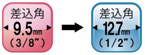 ※差込角の大きなレンチで力を入れ過ぎますとアダプターが破損し、怪我の原因になります。小さいサイズの差込角に合わせたトルクでご使用ください。