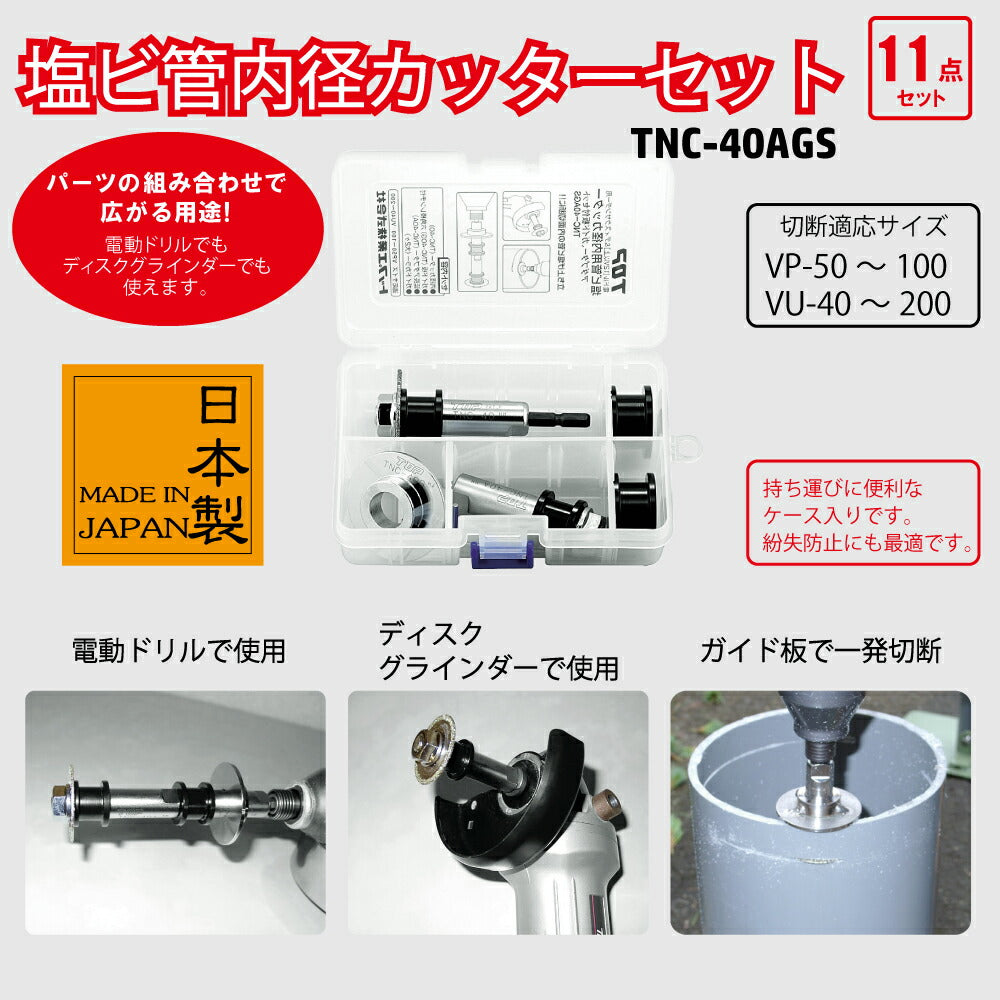 ●セット内容: 本体(TNC-40-H)・落下防止アダプター本体(TNC-40A-H)・ガイド板本体(TNC-40G-H)・替刃(TNC-40C)・カラー小/大(TNC-KS/KL)×各2ケ・ナット(TNC-N)×各2ケ・六角棒レンチ2.5mm(HES-25)・TNC-40AGS用ケース