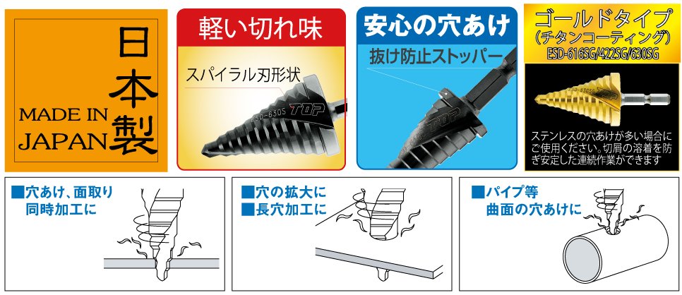 ●(16・18・20・22mmは)デッキ・インサートボルトの下穴あけに最適です。