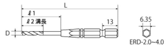 ●ドリル溝長ℓ2(mm): 22