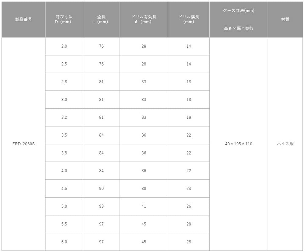 ●セット内容: ERD-2.0・2.5・2.8・3.0・3.2・3.5・3.8・4.0・4.5・5.0・5.5・6.0