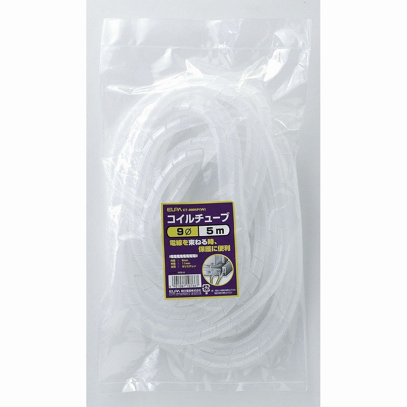 朝日電器(ELPA) コイルチューブ φ9mm・5m ホワイト 【品番:CT-0905P(W)】