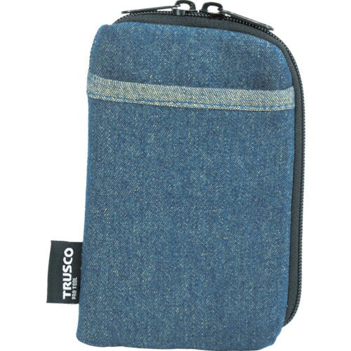 ●耐久性のあるデニム生地を使ったスマホ用収納ケースです。