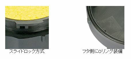 ●フタ側にOリングを装備し密閉性が高くスポンジの液漏れや蒸発、ごみの混入等の心配はありません。