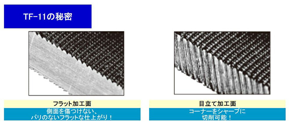 ●平のヤスリ目がない面はサイドフラット加工を施し、コーナー切削時に傷が入りません。